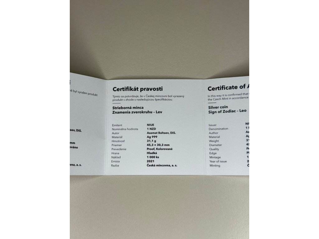 Limitovaný sběratelský kousek s nádherným motivem Lva – perfektní doplněk každé numismatické kolekce.