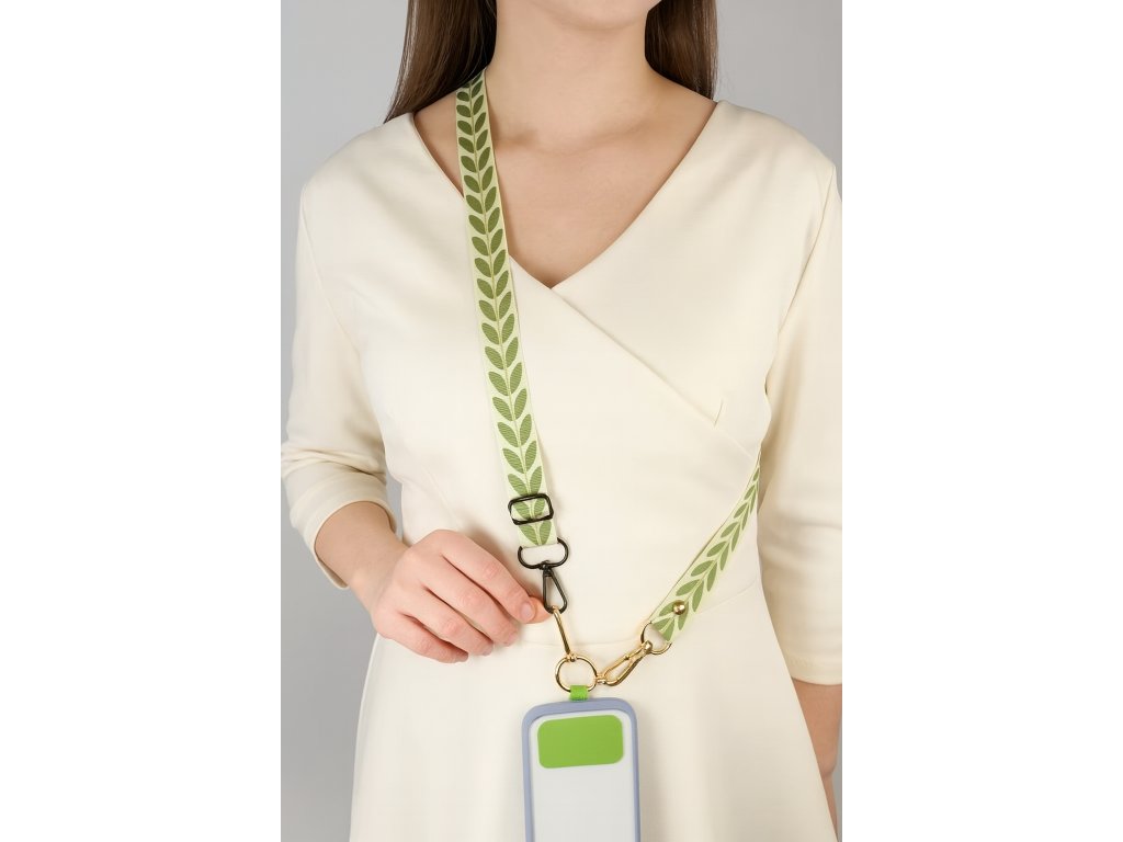 Dodej svému telefonu styl i praktičnost! Tento nastavitelný popruh na mobil s jemným listovým vzorem je ideální doplněk pro každodenní nošení. Vyroben z kvalitní kombinace polyesteru a nylonu, je lehký, příjemný na dotek a zároveň odolný.